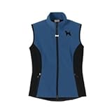 Sleek, modern and very comfortable. Soft Shell Vest. 96% Polyester 4% spandex outer shell coated with 8,000mm waterproofness/700gm breath ability. 100% polyester jersey backing. Three layer soft shell construction, full front zipper with our bone zipper pull. Two zippered pockets. Shock cord drawstring at hem. Inside pocket for a personal compact audio device. We directly embroidering a smaller version of our beautiful Portuguese Water MINI on the left chest, and our exclusive paw/bone on the back..../ Portuguese Water Ladies' High Tec Vest, Bone Zipper Pull and Embroidered image / Vests Women